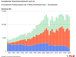 Aluminiumproduktion bleibt rückläufig: Produktionsniveau liegt im Vergleich zu 2021 nur noch bei 76,5 – 87 %, Strangpressprodukte und Walzprodukte…