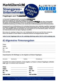 Im Themenheft der Fachzeitung ALUMINIUM KURIER informieren wir jährlich den Markt über Strangpress-Unternehmen.