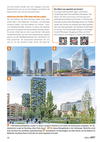 322026und sind unseren Kunden sehr nah. Engagiert und zuverl%u00e4ssig k%u00fcmmern wir uns um ihre Anliegen, sind einfach derbeste Partner, den man sich w%u00fcnschen kann.Spezialisten f%u00fcr den MetallbauWir, die Experten der Roto Aluvision, haben unser deutsches Werk in der bekannten T%u00fcrschloss- und Beschlaghochburg Velbert. Von dort beliefern wir Fenster-, T%u00fcrenund Fassadenhersteller weltweit mit genau den Beschl%u00e4gen, die f%u00fcr ein bestimmtes Bauvorhaben ben%u00f6tigt werden. Es ist kein Zufall, dass wir das so gut k%u00f6nnen: Viele gro%u00dfeFassadenhersteller und Aluminiumsystemh%u00e4user arbeitenebenso wie das Metallbauhandwerk seit Jahrzehnten mitRoto zusammen. Sie konstruieren gemeinsam mit uns,und wir von der Aluvision finden immer die beste Be1.000 Balkonschiebet%u00fcren wurden in diesen Londoner Wohnturm mit seinen 58 Stockwerken eingebaut. F%u00fcr Bedienkomfort sorgt der Beschlag %u201eRoto Patio Inowa%u201c. F%u00fcr dieses B%u00fcrogeb%u00e4ude in der Hamburger HafenCity schufRoto Aluvision den perfekten Systembeschlag. Schiebet%u00fcren mit Beschl%u00e4gen von Roto f%u00fchren auf die Balkone imMail%u00e4nder Hochhaus Bosco Verticale mit seiner begr%u00fcnten Fassade.123123Fotos: Adobe Stock UnternehmenslizenzWie %u00f6ffnet man eigentlich ein Fenster?Du w%u00fcrdest wahrscheinlich sagen: %u201eGriff drehen, Fens terfl%u00fcgel nach innen aufdrehen oder kippen.%u201c Dasstimmt. Oft. Aber nicht immer. Und schon gar nichtau%u00dferhalb Deutschlands und Europas. In Amerika oderAsien gibt es ganz andere Beschl%u00e4ge als bei uns. Des halbwerden dort Fenster zum Beispiel nach au%u00dfen ge %u00f6ff netoder nach oben geschoben. Als weltweiter Perfect Matchf%u00fcr Fenster- und T%u00fcrenhersteller fertigen wir Beschl%u00e4gef%u00fcr jede %u00d6ffnungsart. Neugierig auf News von Roto?Dann folge uns auf Instagram, Linkedin oder Facebook.