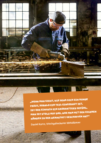 %u201eWenn man sieht, wie sehr sich ein Kunde freut, sobald ein Teil eingebaut ist, ist das einfach ein gro%u00dfartiges Gef%u00fchl. Man ist stolz auf das, was man mit den eigenenH%u00e4nden in der Werkstatt geschaffen hat%u201c DanielKorcz, frischgebackenerMetallbauerFoto: Bender